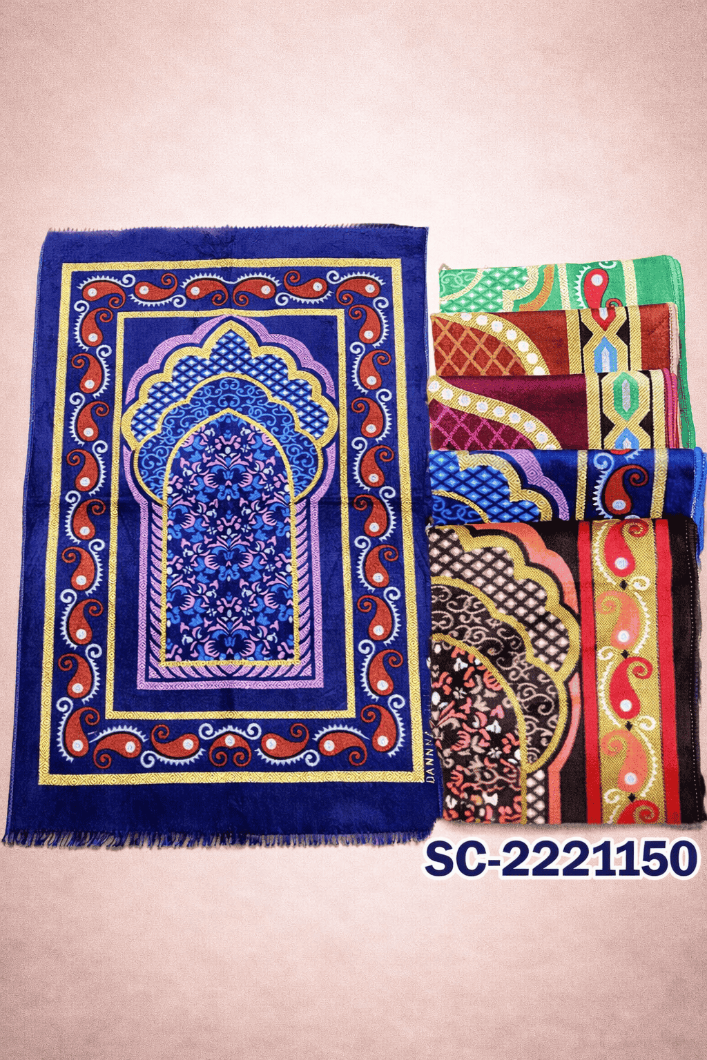 The Zam Zam Islamic Store presents a collection of high-quality prayer mats designed to enhance your spiritual experience. Each mat (Model: SC-2221150) is crafted from premium velvet that provides a soft cushion for the knees and forehead during Sujood.
